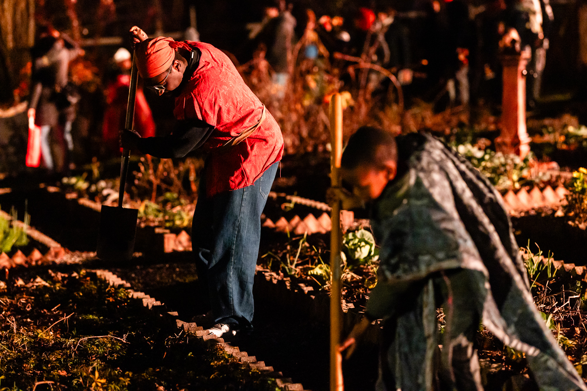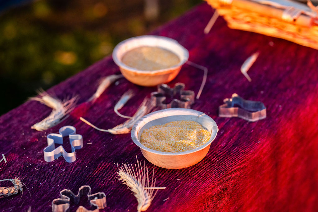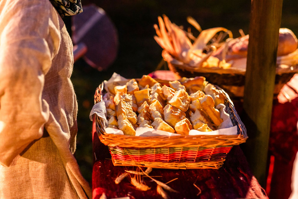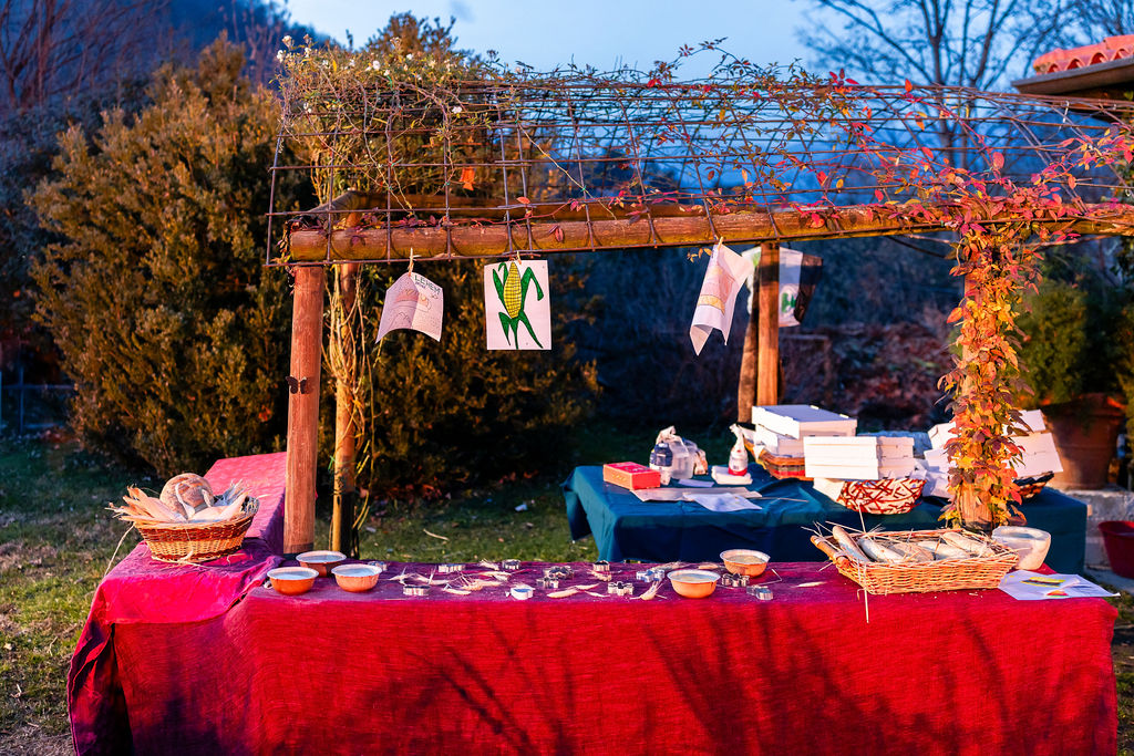 Da lì, il presepe si snoda dentro “la città”. Betlemme appare nella sua vita quotidiana: il forno, l’odore del pane, le mani impastate. Un fornaio prepara biscotti e pagnotte, mentre poco più in là i contadini lavorano la terra dell’orto di Cometa, la stessa terra che durante l’anno insegna pazienza e concretezza a chi la coltiva: mettere semi, attendere, prendersi cura di ciò che cresce.
