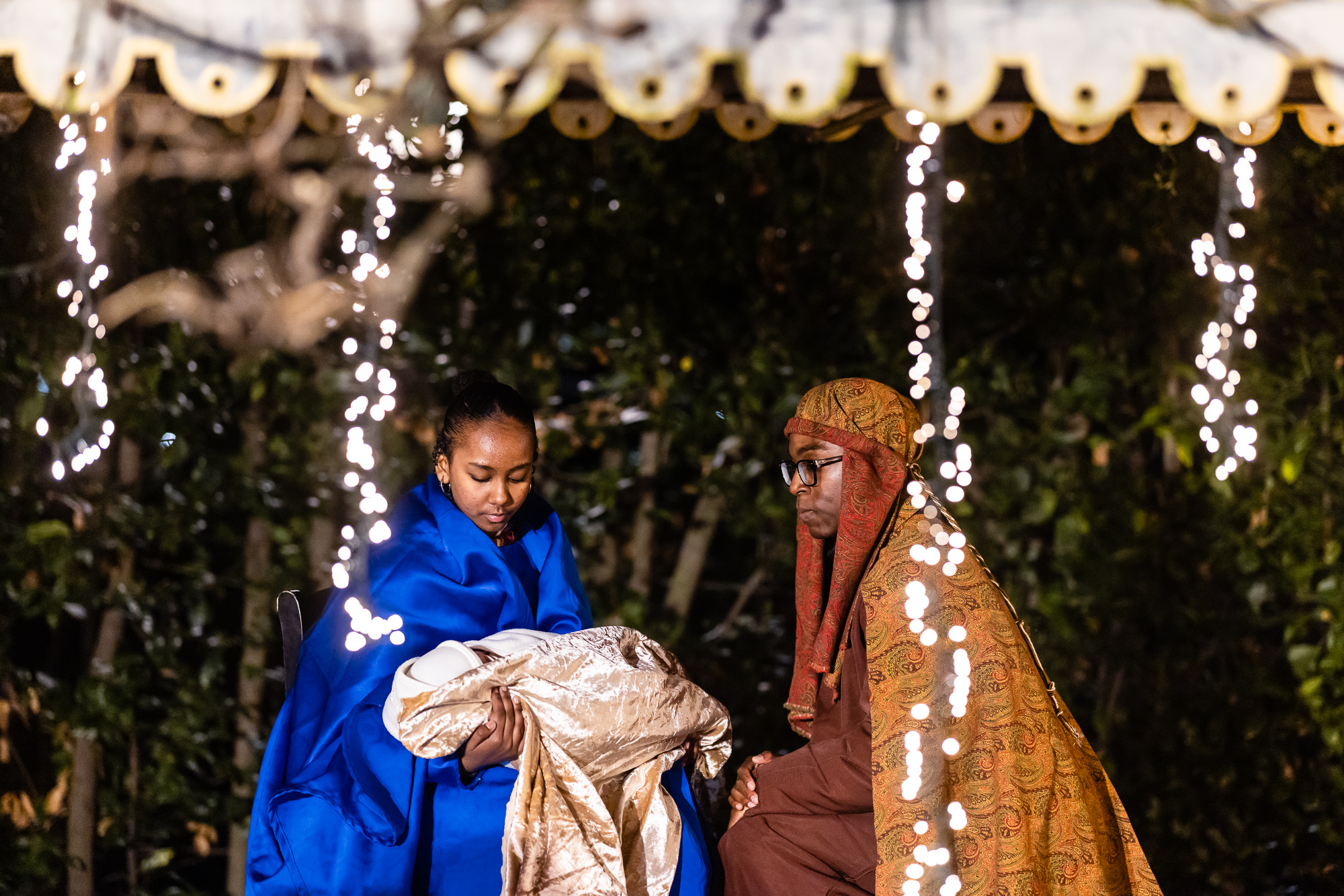 A seguire quel cammino ci sono le famiglie che vivono l’affido, i bambini, tutti quelli di Cometa, gli amici, le persone di Como e alcuni arrivati da Milano. In fila, con tenacia e pazienza: come succede quando una cosa ti interessa davvero e non vuoi perderla. Gli angeli guidano fino alla grotta. Nel percorso compaiono i soldati romani, a ricordare che ogni nascita avviene dentro un tempo concreto, spesso difficile. E tuttavia, proprio dentro quel tempo, qualcosa si apre.